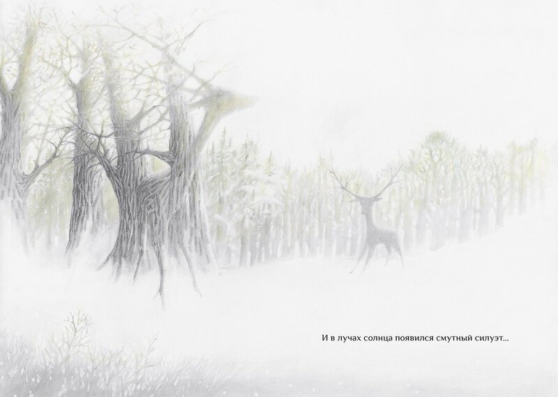 Прекрасный снежный олень, чтобы спасти своего малыша, превращается в дерево.