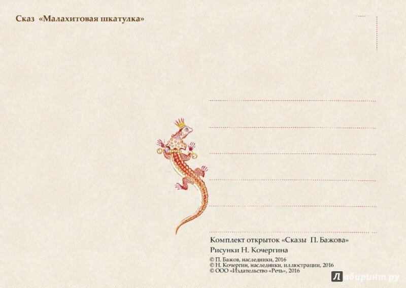 В набор открыток вошли особенно полюбившиеся детям рисунки Николая Кочергина к волшебным сказам Бажова Их можно вставить в рамку и повесить на стены детской, создав неповторимый котофейский уют. Можно послать по почте друзьям и близким. Набор из 12 открыток.