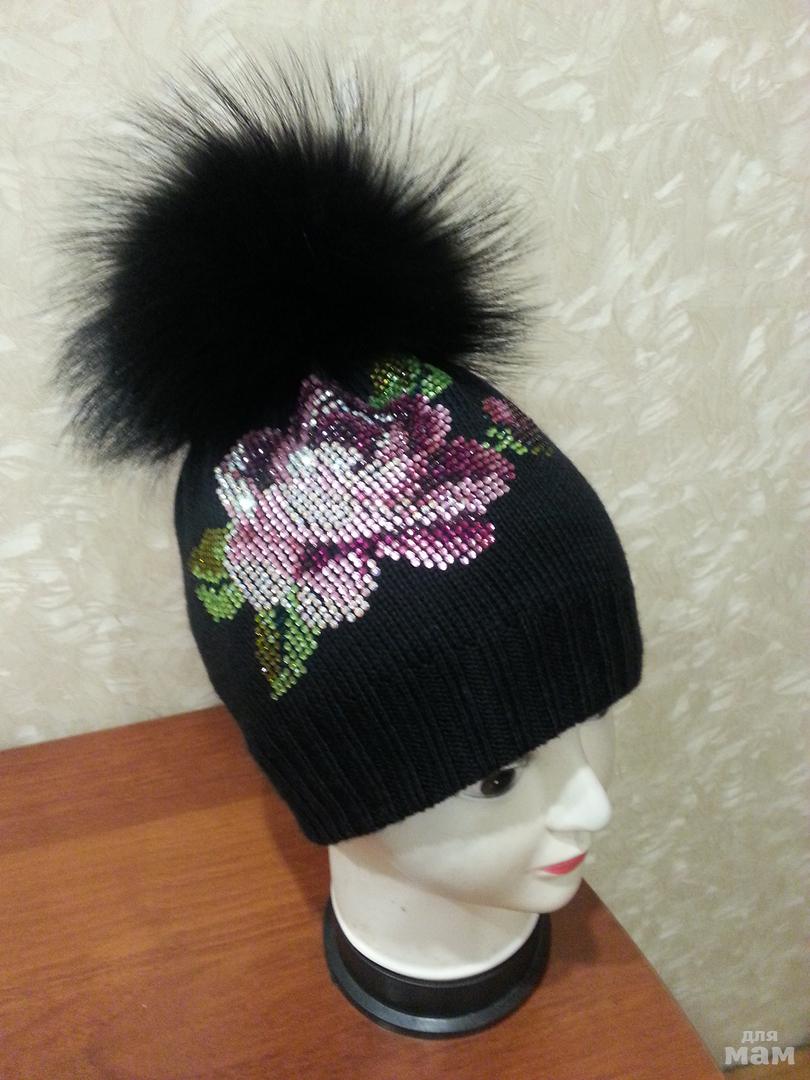 Вяжу на заказ шапочки с ручным декором из страз под любые курточки, пальтишки, коминезончики