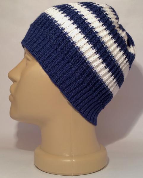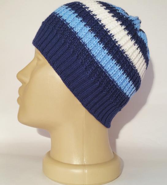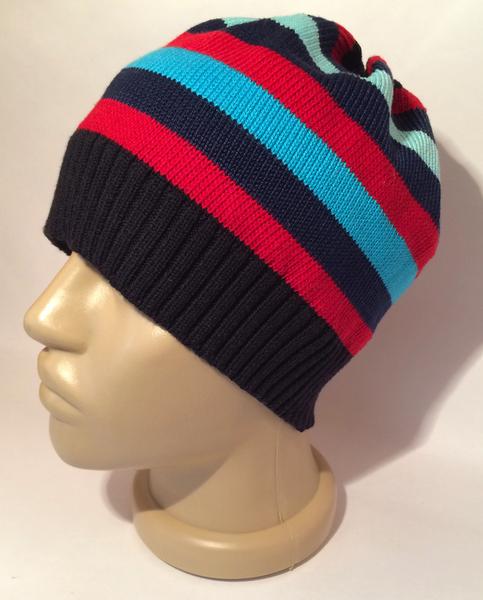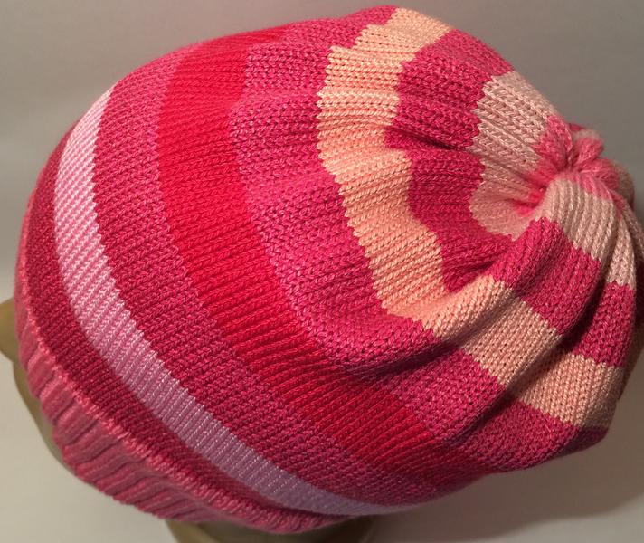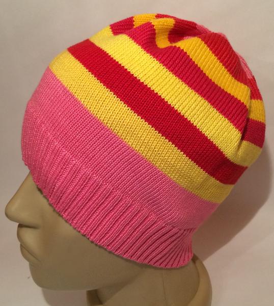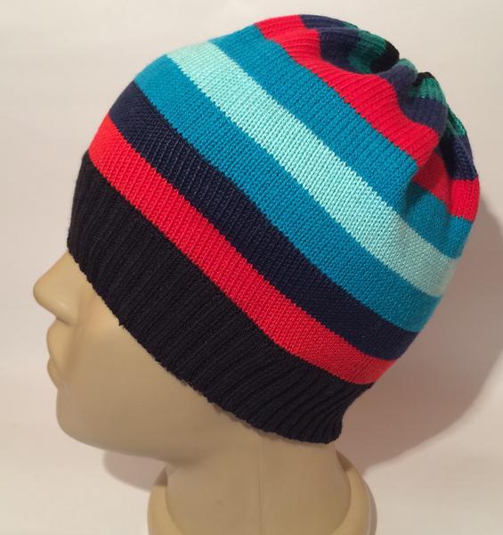 Полосатик с тёмно-синей резинкой и полосками цветов - малина, джинс, чистый хлопок, ОГ 53-54. Цена 500 р.
