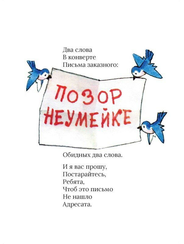 По городу ходит почтальон с письмом, адресованным Неумейке. Но дети Неумейками быть не хотят: увидев почтальона, они тут же убирают игрушки, сами одеваются или берут в руки ложку. Может быть, в вашем доме живёт Неумейка? Прочитайте ему это стихотворение и увидите, как всё изменится!
