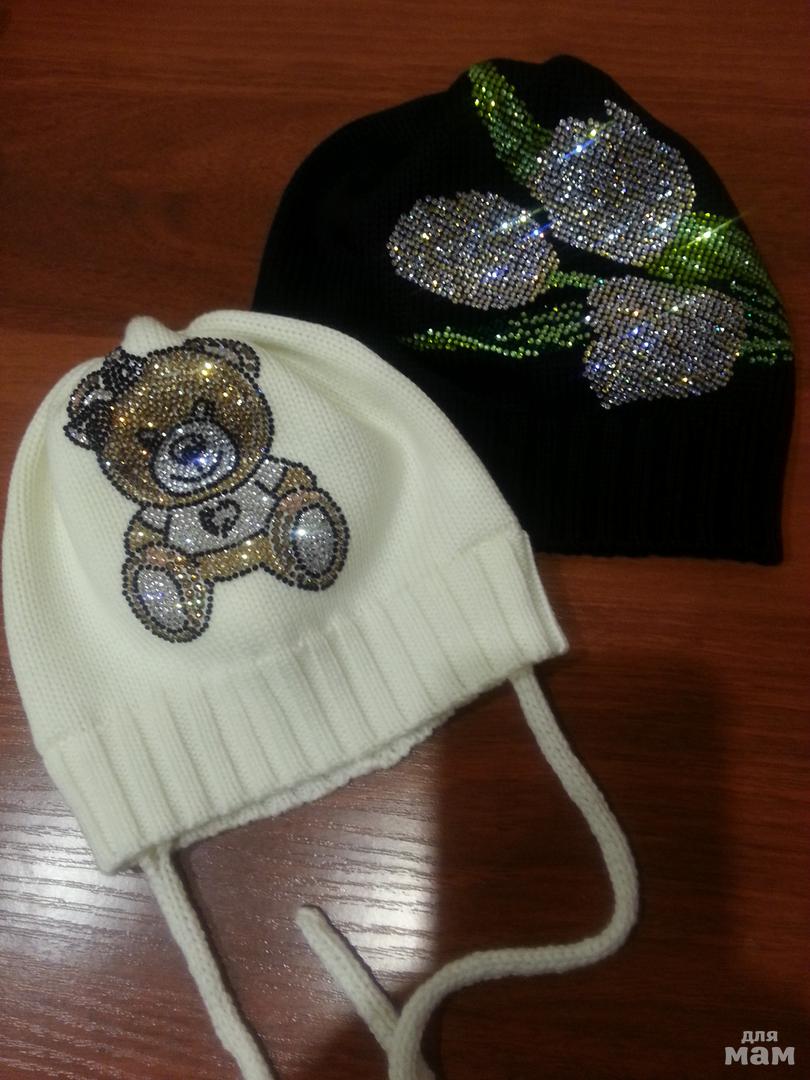 Вяжу на заказ шапочки с ручным декором из страз под любые курточки, пальтишки, коминезончики