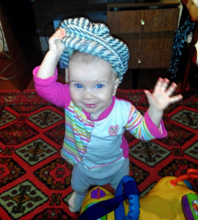 А вечером мы играли в таксиста.Я нашла фуражку деда и пыталась её на Лизу одеть,а та с негодованием её снимала так быстро,что я просто не успевала фотографировать.Кое как удалось,но дальше фуражку пришлось убрать.И мы просто катались на машине,точнее я нашла ленту и прицепила её к машине и катала её из комнаты в комнату.Было очень весело.Когда мне надоело,я предоставила машинку в её полное распоряжение.