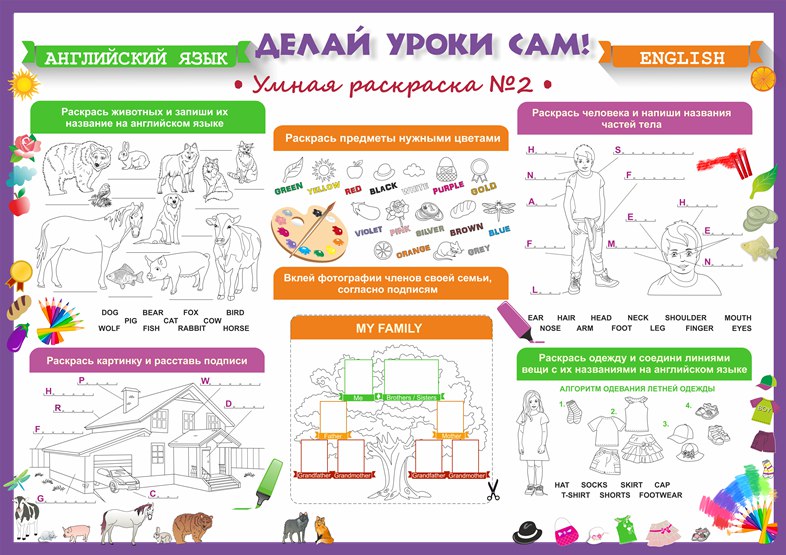 💡Раскраска ориентирована на самый начальный уровень изучения языка. Если ваш ребенок еще не начал изучать язык, то можно попробовать начать именно с этого плаката, конечно многое придется подсказать/подсмотреть, но раскраска в любом случае оставит положительный след в памяти вашего ребенка.