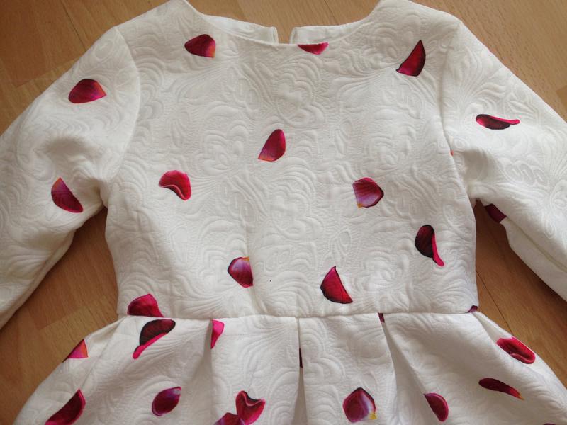 Платье размер 8л, но мы надевали в 5-6, жаккард, внутри хлопковый подклад, 1 раз на утренник 800р
