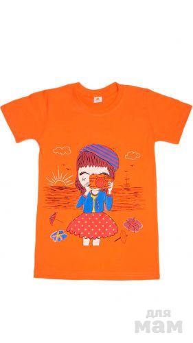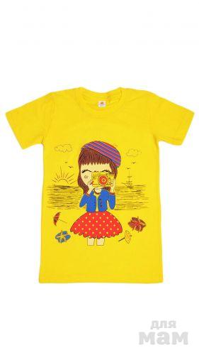 9.Очаровательная футболка для девочек, выполненная из комфортного хлопчатобумажного трикотажа. Модель с округлым вырезом горловины оформлена симпатичным рисунком. Отличный вариант на каждый день.