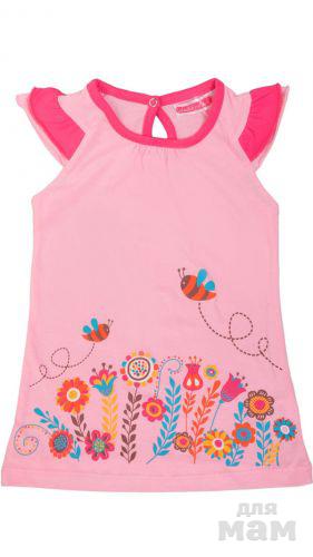 7.Замечательная детская туника, выполненная из натурального хлопчатобумажного трикотажа. Модель с округлым вырезом горловины, оформлена симпатичным печатным принтом. Отличный вариант на каждый день.