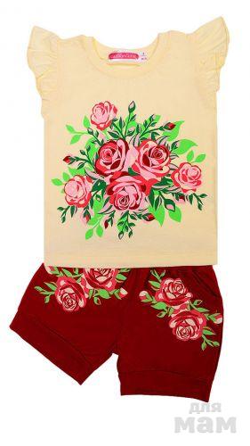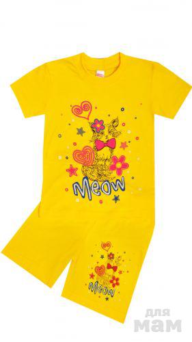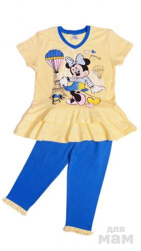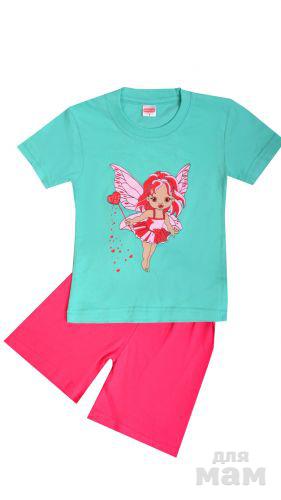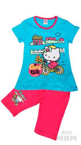 Замечательный детский комплект, состоящий из футболки и бридж. Модель выполнена из натурального хлопка, оформлена печатным рисунком. Прекрасный вариант для повседневного использования.Модель маломерит на один размер.