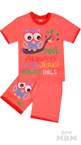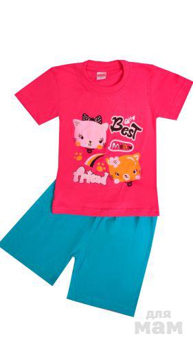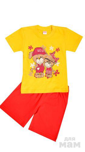 4.Замечательный комплект, состоящий из футболки и шорт. Модель выполнена из хлопчатобумажного трикотажа и оформлена оригинальным рисунком. Прекрасный вариант для повседневного использования.