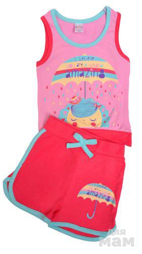 | Очаровательный комплект для девочек, состоящий из маечки и шортиков. Модель выполнена из натурального хлопка, оформлена симпатичным печатным рисунком. Состав: 100% Хлопок |