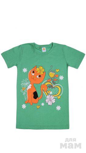 14.Чудесная детская футболка, выполненная из натурального хлопчатобумажного трикотажа. Модель с округлым вырезом горловины оформлена симпатичным рисунком. Отличный вариант на каждый день.