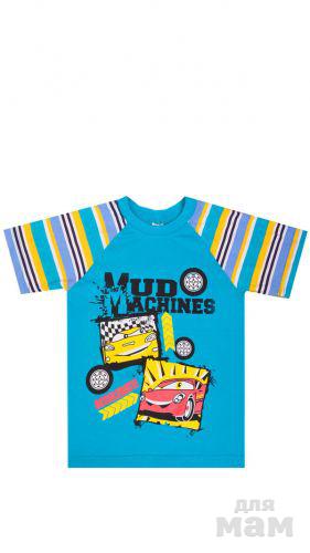 01.Очаровательный комплект для мальчика, состоящий из футболки и шортиков. Модель выполнена из хлопчатобумажного трикотажа и оформлена красочным рисунком.