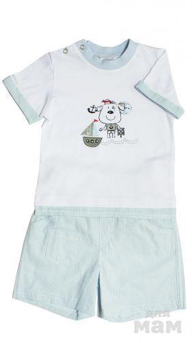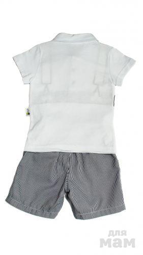 4.Этот модный хлопковый комплект состоит из футболки-поло и шортиков. Футболка декорирована интересной аппликацией, имитирующей подтяжки. Шортики на эластичном поясе. Такой комплект - прекрасный вариант для прогулок жарким днем.