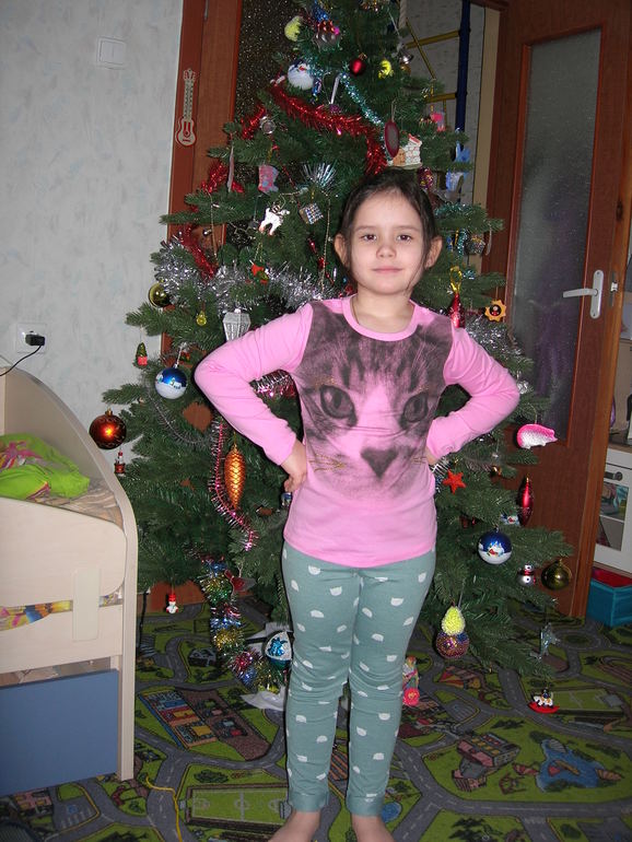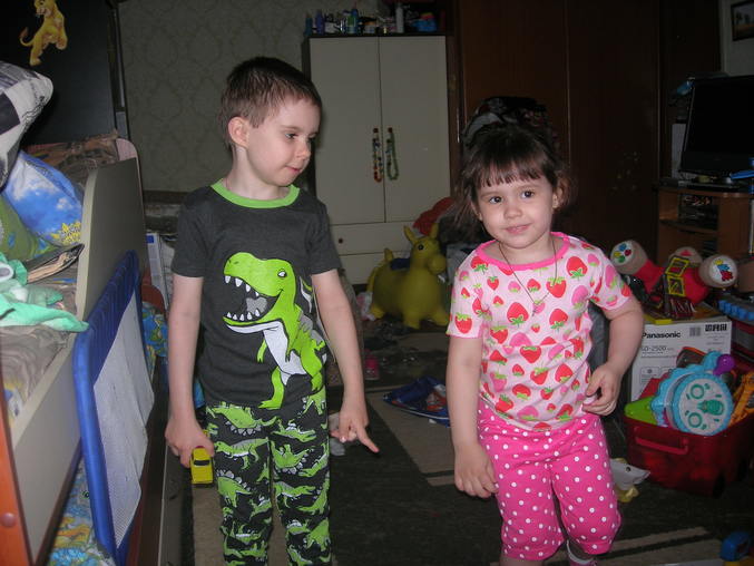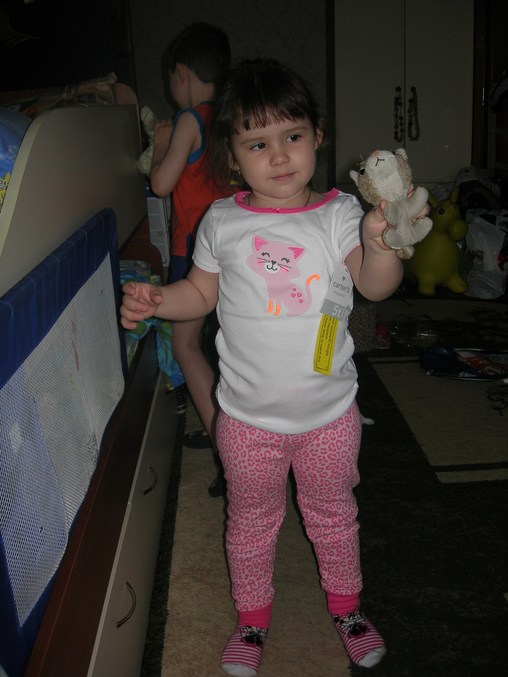 На Арсюшке пижама 5т, на Крис тоже 5т, вторая из набора.Одела сама так