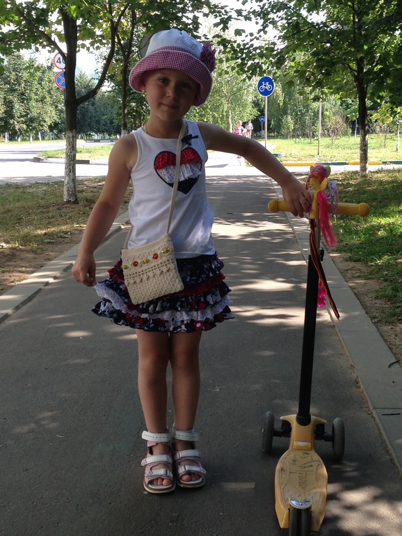 Света Ага))) Наряд с кофточкой в полосочку так подходит под самокат) прям все цвета совпадают)