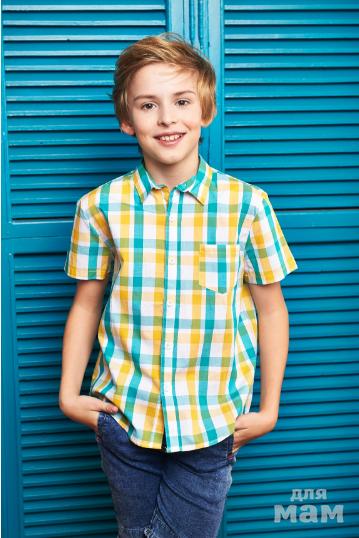 РУБАШКА КОР РУКАВ КЛЕТКА ЗЕЛЕНЫЙ, ГОЛУБОЙ, КРАСНЫЙ