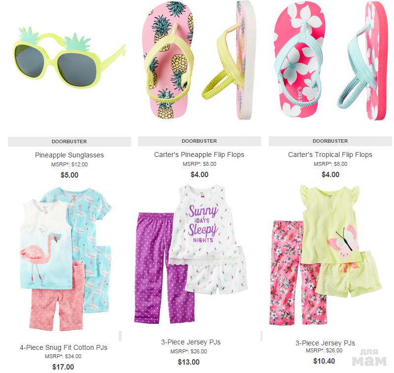 Супер предложение от Carter's - пижамные сеты СО СКИДКОЙ 60%!!! Doorbusters от $4!