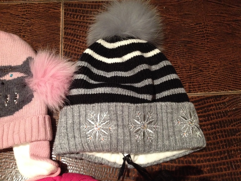 серая с пумпоном на 2-4 г. цена 1500р 70% шерсть, 30% акрил, подклад -флис новая цена 1000р