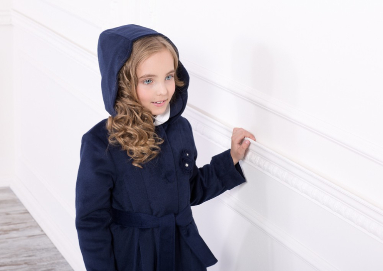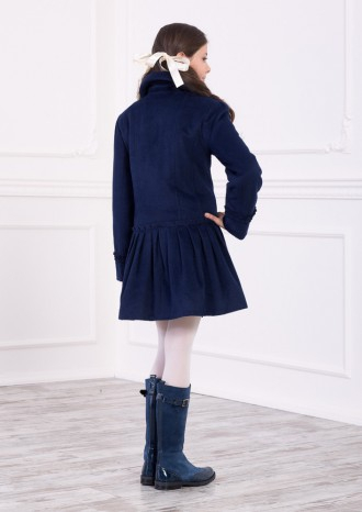 Стильный комплект для самого утонченного вкуса маленькой модницы - демисезонное пальто и берет. Комплект выполнен в благородном темно-синем цвете.