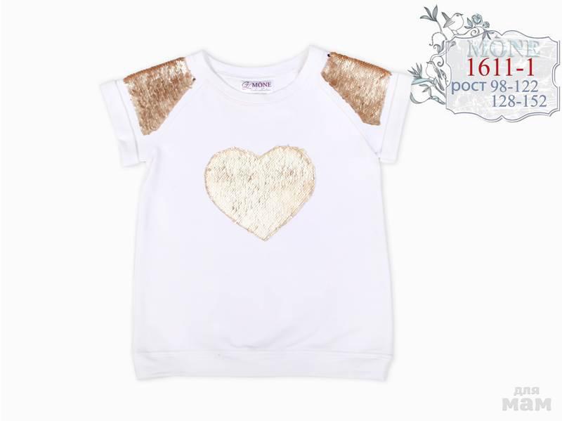 1685 свитшот трикотаж, паетка двухсторонняя молочный 128-152 цена 23,7