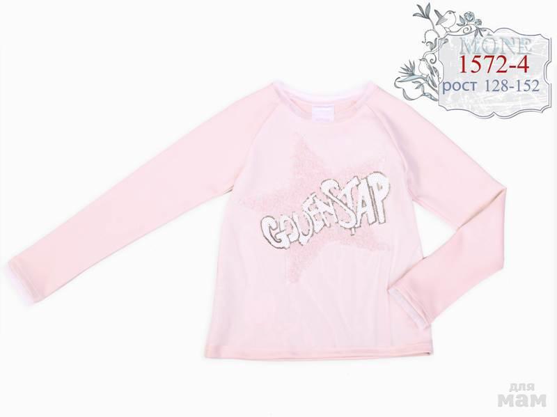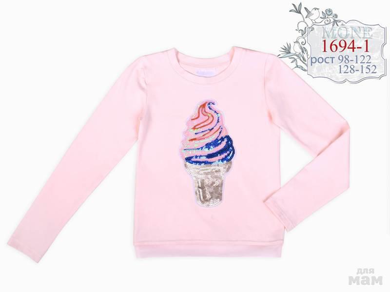 1694 кофта трикотаж, аппликация паетка молочный 128-152 цена 14,4