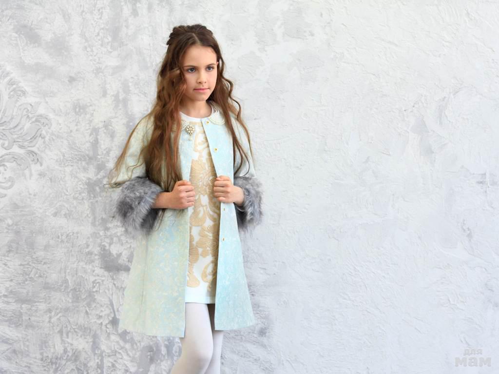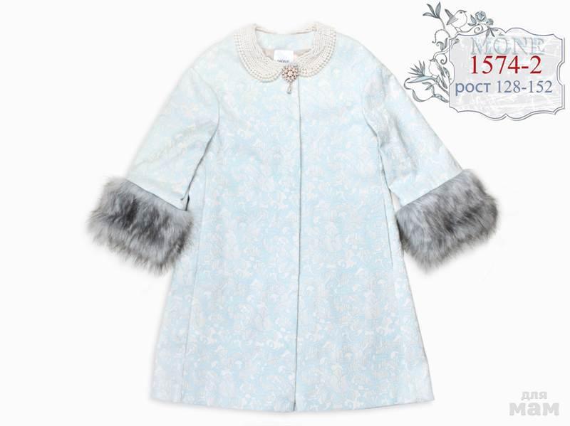 1574-2 пальто текстиль, атлас жаккард, воротник жемчуг лазурь 128-152 цена 52,65