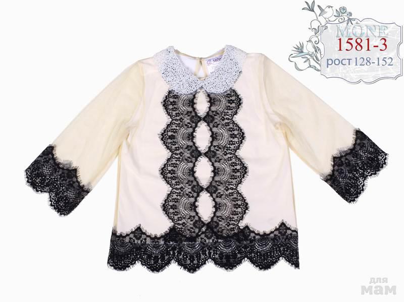 1581-3 блузка евросетка, французские кружева, воротник бисер крем 128-152 цена 31,65