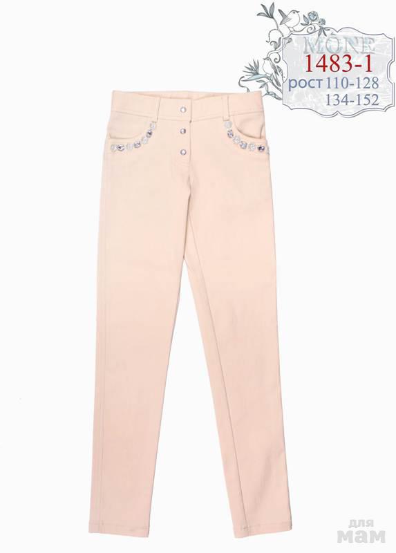 1483-1 брюки текстиль, джинс стрейч, ручная вышивка персик134-152 цена 37,35