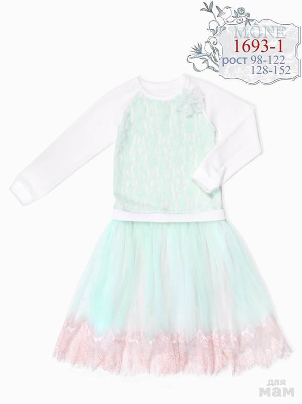1696-1 юбка трикотаж, гипюр вязка ментол 134-152 цена 19,65