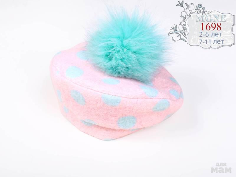 1698 берет текстиль, шерсть букле, помпон писец лотос 2-6 цена 14.10