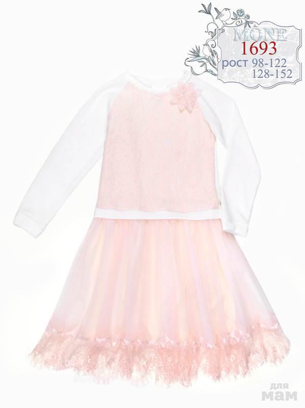 1675-1 платье текстиль, жаккард, фатин, юбка оборкипудра 110-128 цена 88,2