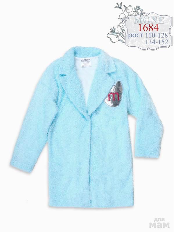 1684 пальто, мех искусственный, аппликация паетка лазурь 134-152 цена 39,9