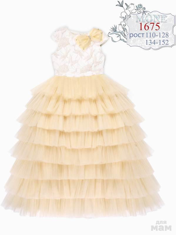 1675 платье текстиль, жаккард, фатин, юбка оборки крем 134-152 цена 95,55