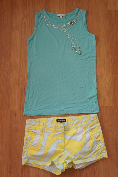 Майка ф. Miss Grant р. 38 в идеале, все стразы и камни на месте - 1200 р. Шорты ф. Roberto cavalli р. 8 ( 138 на худенькую девочку 140 пойдут) в идеале, одели 2 раза на отдыхе 1600 р.