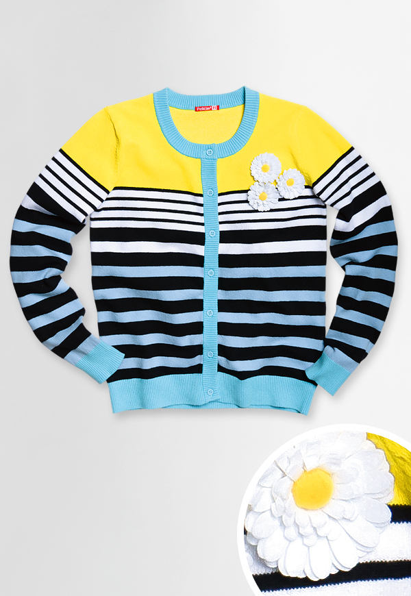 Хлопковый, полосатый жакет с ромашками 8/10/11 1300р