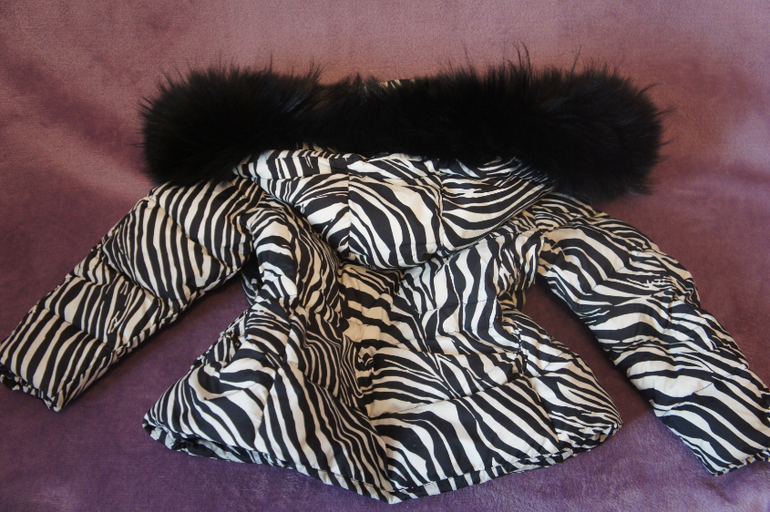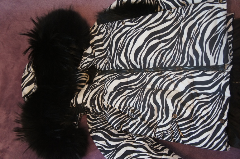 Куртка с отворотом: первый борт на молнии, второй борт - на кнопках , с муфтой украшенной отстегивающимся мехом. По бокам вшиты карманы на молниях с эмблемой manudieci