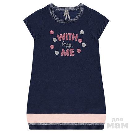Вязанное платье с короткими рукавами . 2 цвета . Блестки спереди. Контрастные полосы в узоре на нижней части платья. Концы в резинке. 100% хлопок . Арт-NF241X
