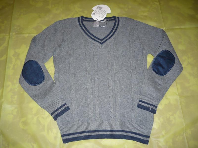 НОВЫЙ Пуловер школьный Fun time, серого цвета с имитацией заплаток на локтях. Хлопок - 95%, лайкра -5%. р.128см, но лучше со 122см.