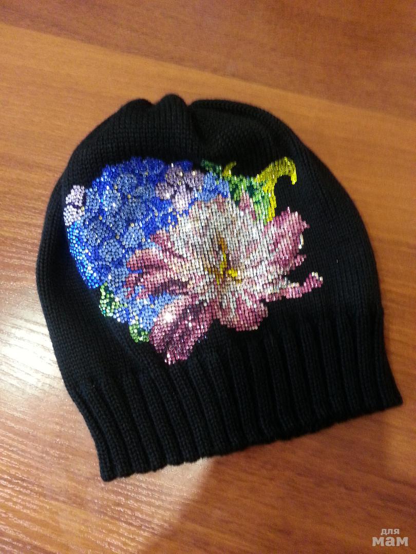 Вяжу на заказ шапочки с ручным декором из страз под любые курточки, пальтишки, коминезончики