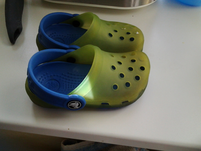 Состояние отличное, одевали несколько раз. На солнце желтая часть становится более зеленой. Самый верный цвет на первом фото. Единственный недочет - чуть потерт крокодил с одной внутренней стороны. В остальном хоть бирку вешай. Цена 950 рублей