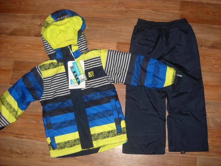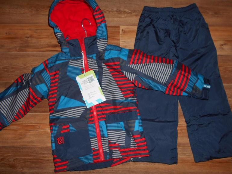 1. Комплекты для мальчиков NANO. На температуру от 0 градусов и выше (до +12+15С). Куртка с утеплителем 60 гр. и флисовой подкладкой полностью, рукава на резинке и липе, штаны без утеплителя - на хлопковой подкладке. Штаны по длине хорошо подворачиваются и фиксируются. Запас +4см.