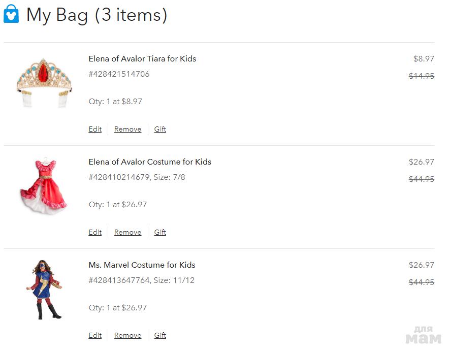 Девочки, DISNEY радует скидкой до 40% на костюмы и аксессуары! Корзина на $75 (для бесплатной доставки по Штатам) почти собрана. Осталось совсем немного, ПРИСОЕДИНЯЙТЕСЬ!