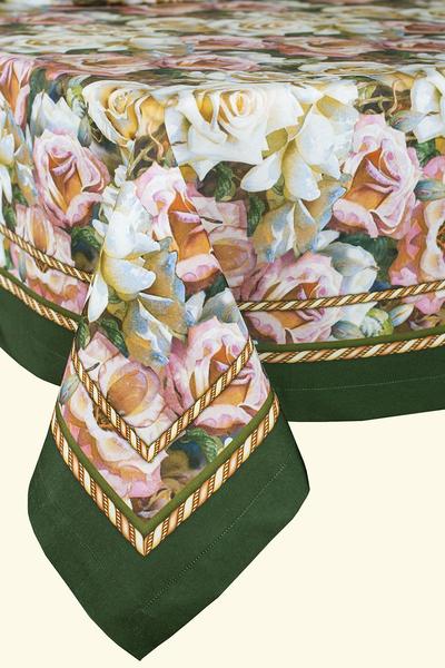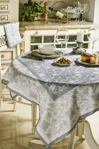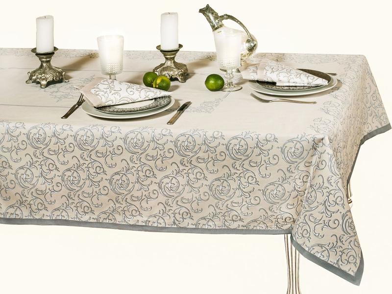 Скатерть выполнена из натурального хлопка с добавкой полиэстера с защитной пропиткой, идеально выглядит после стирки, не теряет форму и цвет.Стирка при 40 градусах.
