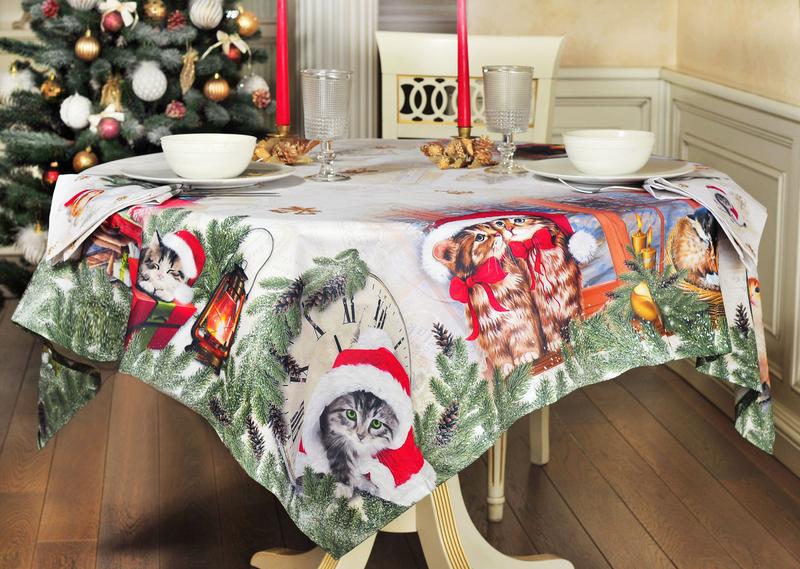 Новогодняя скатерть "ANHELES" КВАДРАТНАЯ 140*140