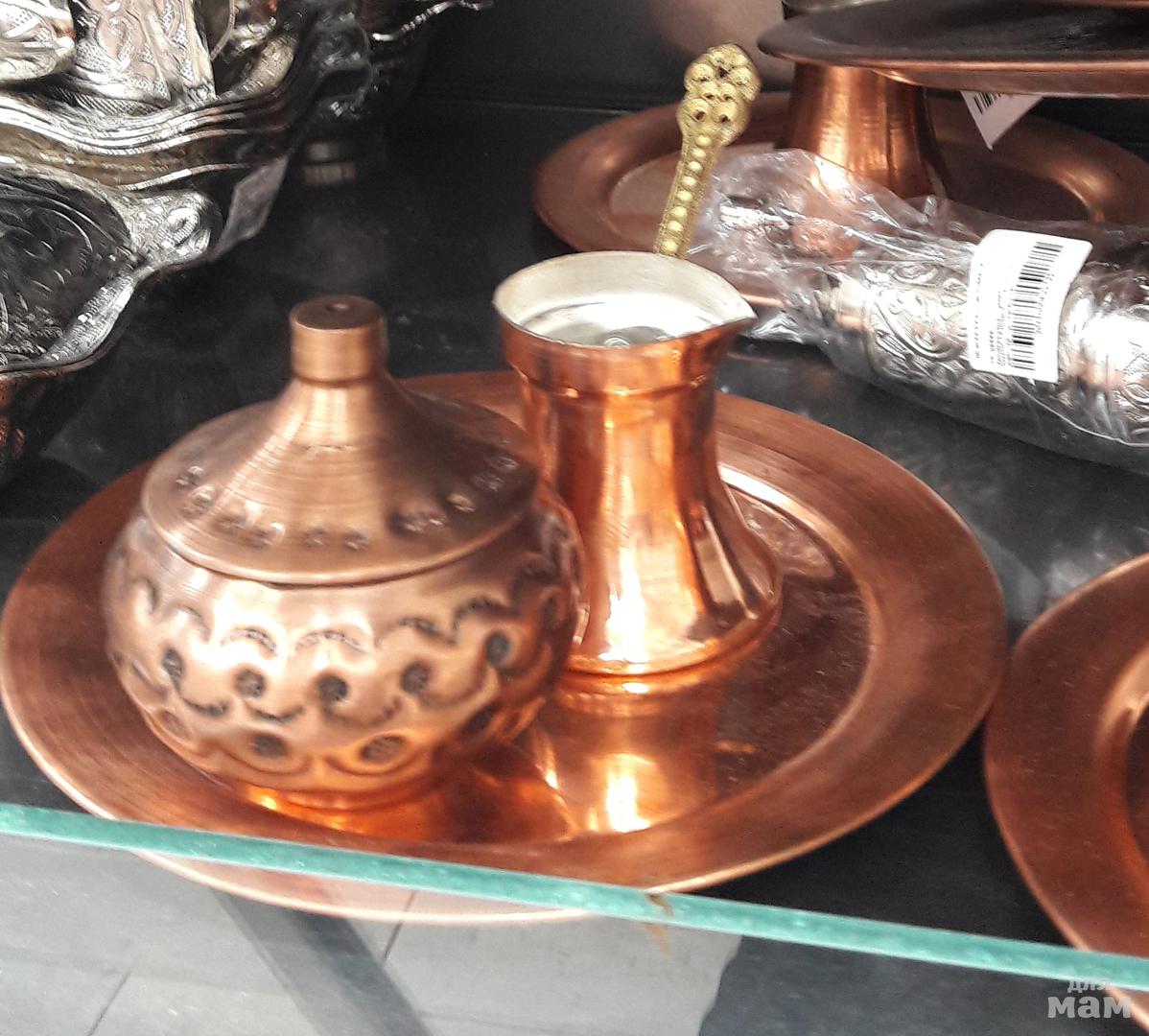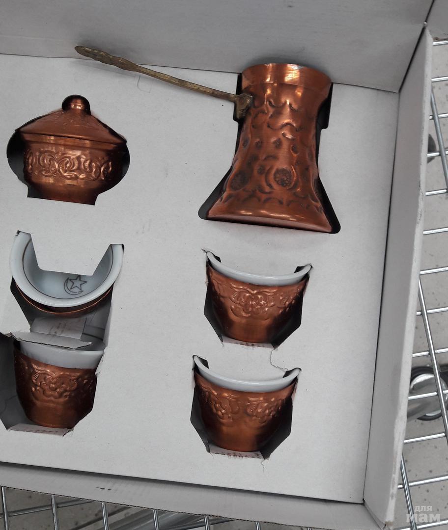 Набор 4 персоны - поднос + джезва + сахарница + 4 чашечки + 4 подстаканничка. Цена 3500 руб