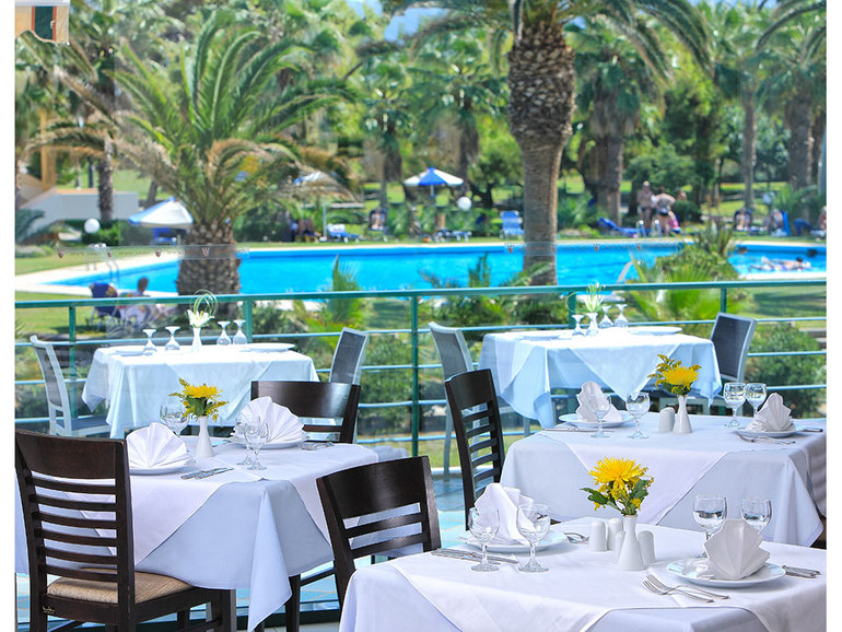 Питание гостей включает блюда международной и греческой кухонь и подается в стиле шведского стола (самообслуживание) в главном ресторане.