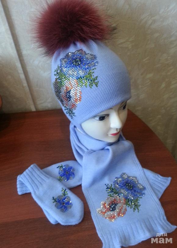Вяжу на заказ шапочки с ручным декором из страз под любые курточки, пальтишки, коминезончики