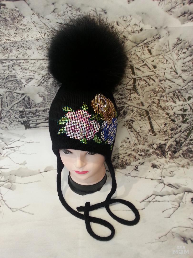 Вяжу на заказ шапочки с ручным декором из страз под любые курточки, пальтишки, коминезончики