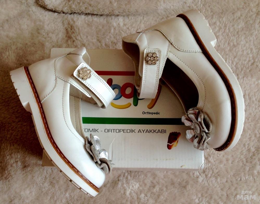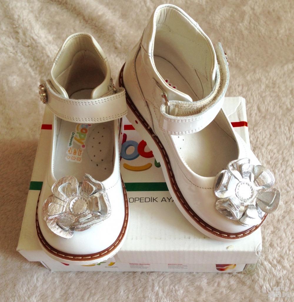 Ортопедическая стелька. Натуральный лак и на натуральной коже. Одели один раз на Новый год,в помещении и сейчас уже нам малы, переросли.