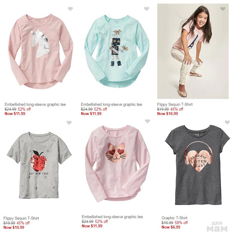 GAPFACTORY устроил распродажу детских товаров и товаров для малышей! Sale до 70%! Детские футболочки по $6.99!